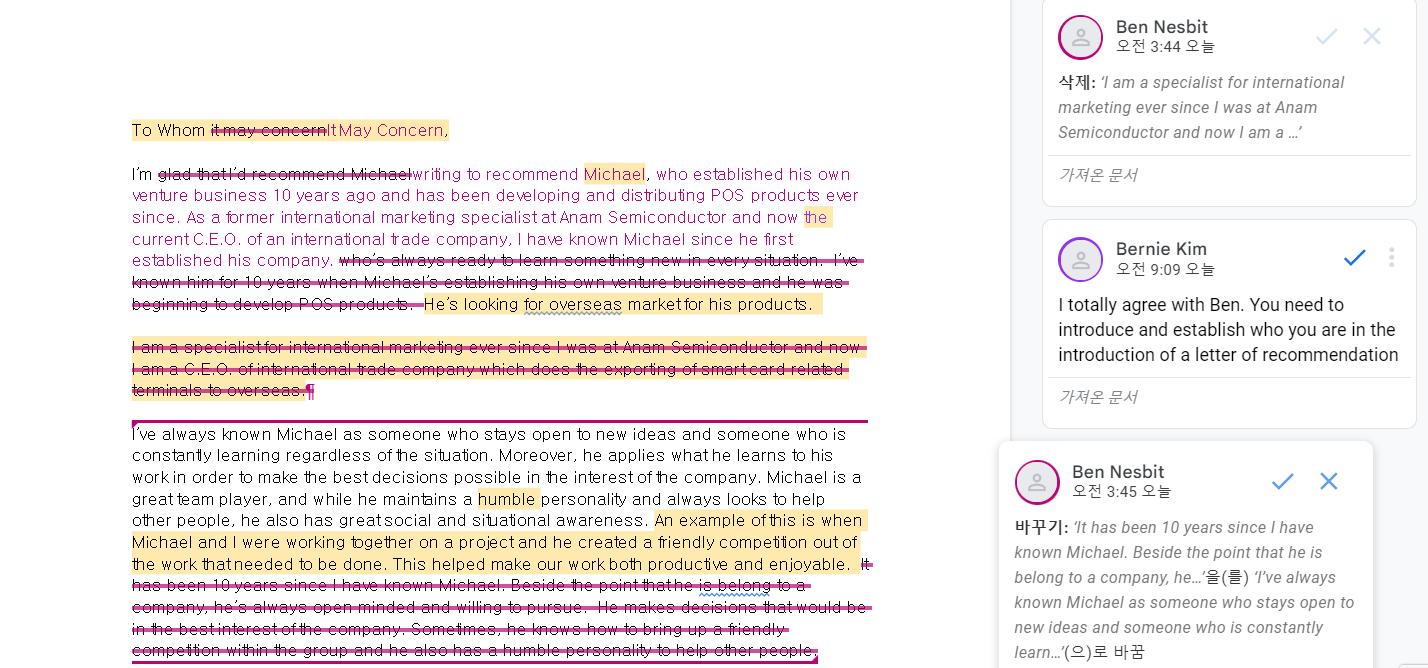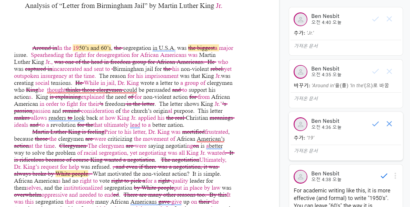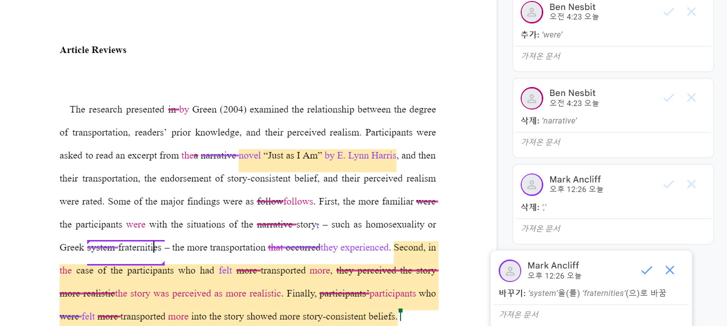- 원어민 교정 팀의 경력에 대한 투명한 정보 공개