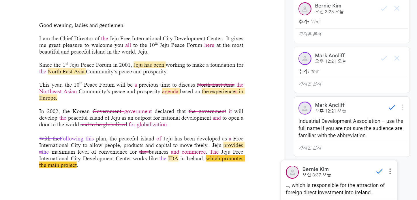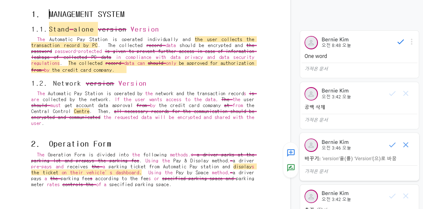 - 법적 효력이 있는 계약서의 경우 교정대상에서 제외됩니다.